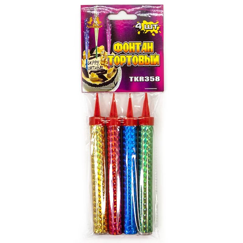 Свеча Фонтан для торта, Цветное пламя, 40 сек, Ассорти, 12 см, 4 шт., TKR358