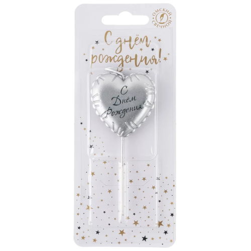 Свеча Сердце, Воздушный шар, на шпажке, Серебро, Металлик, 4,2 + 4,8 см, 1 шт. с держат., 4808