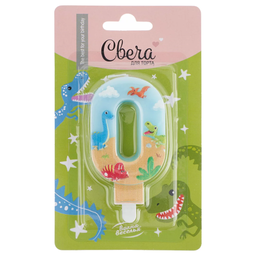 Свеча Цифра, 0 Динозаврики, 9 см, 1 шт. с держат., 622990
