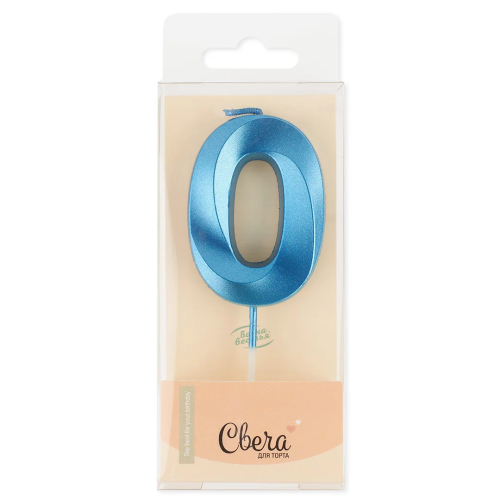 Свеча Цифра, 0 Грани, Синий, Металлик, 4,2*6 + 4,5 см, 1 шт. с держат., 803180