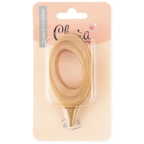 Свеча Цифра, 0 Грация, Золото, с блестками, 7 см, 1 шт., 2025