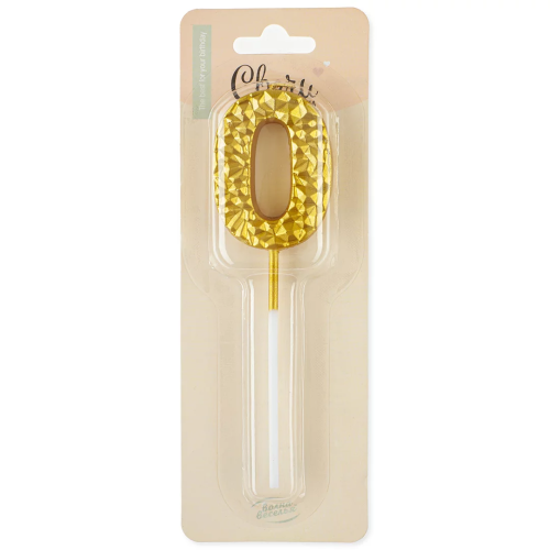 Свеча Цифра, 0 Кристалл, Золото, Металлик, 3,5*4,5 + 7 см, 1 шт. с держат., 802990