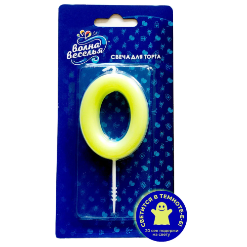 Свеча Цифра, 0 Люминесцентная, Флуор, 3,5*8,5 см, 1 шт. с держат., 802680