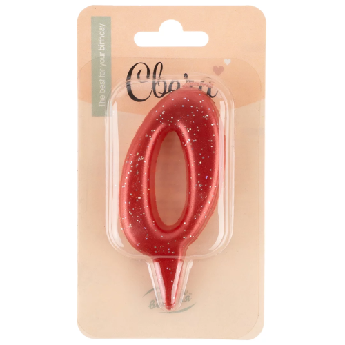 Свеча Цифра, 0 Овал, Красный, с блестками, 4*8 см, 1 шт., 1486