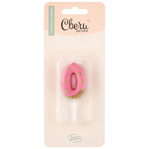 Свеча Цифра, 0 Пончик, Клубничная глазурь, 2,5*4 + 3 см, 1 шт. с держат., 802850