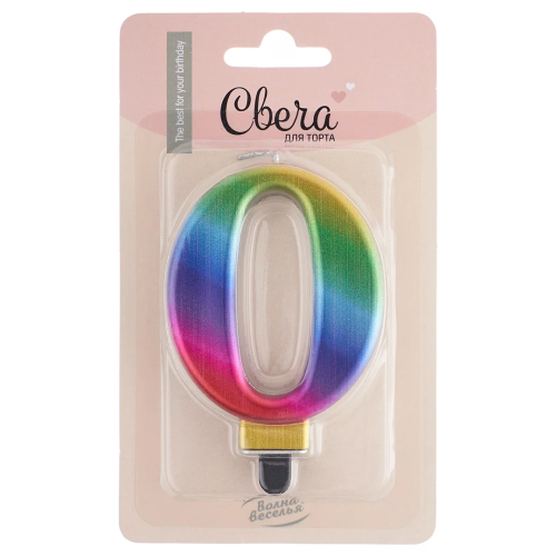 Свеча Цифра, 0, Радужный, Градиент, 8 см, 1 шт. с держат., 622070