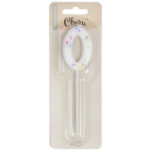Свеча Цифра, 0 Сладкое конфетти, на шпажке, Белый, 5 + 7 см, 1 шт. с держат., 802840