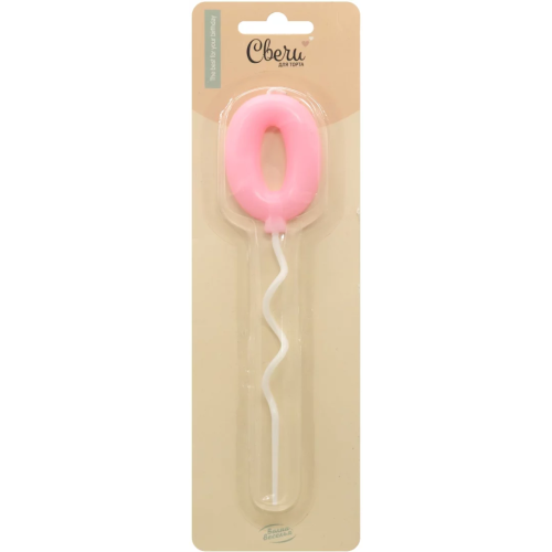 Свеча Цифра, 0 Воздушная серия, Розовый, 6 + 11 см, 1 шт. с держат., 802890