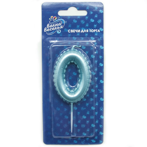 Свеча Цифра, 0 Воздушный шарик, Голубой, Перламутр, 5,8 см, 1 шт. с держат., 127400