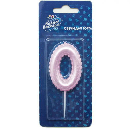 Свеча Цифра, 0 Воздушный шарик, Розовый, Перламутр, 5,8 см, 1 шт. с держат., 127410