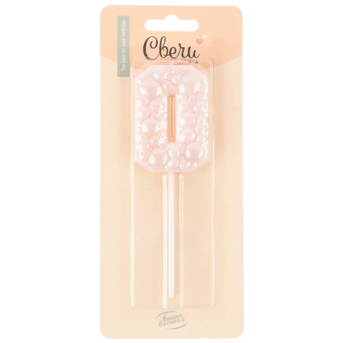 Свеча Цифра, 0 Воздушный жемчуг, на шпажке, Нежно-розовый, Перламутр, 6 см, 1 шт. с держат., 803240