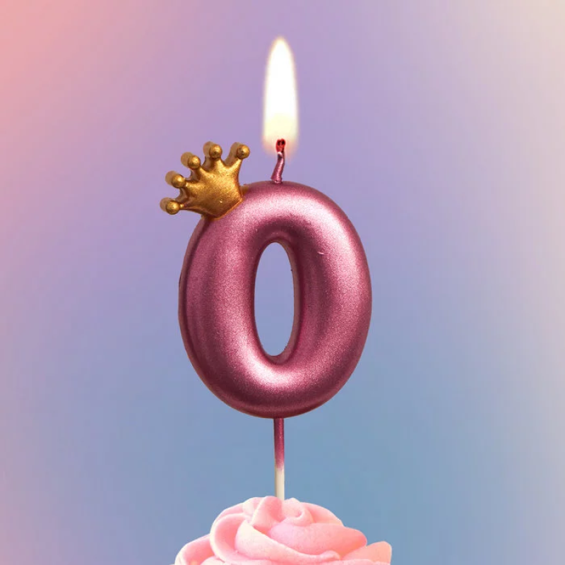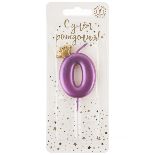 Свеча Цифра, 0 Золотая корона, на шпажке, Ярко-розовый, Металлик, 4*5,5 + 4 см, 1 шт. с держат., 4770