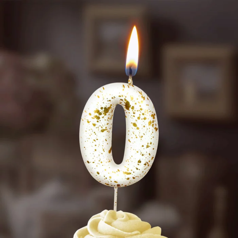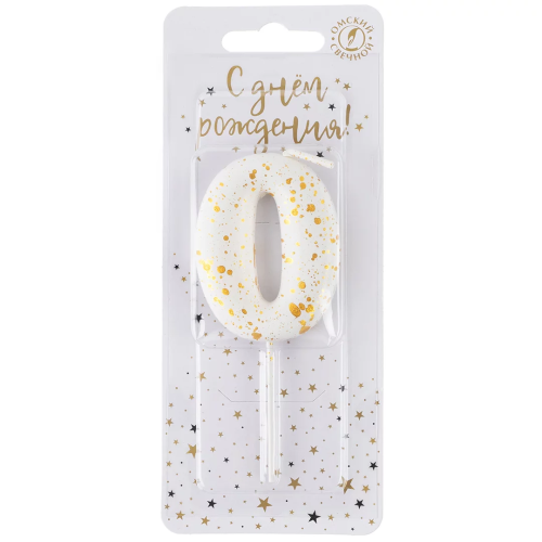 Свеча Цифра, 0 Золотые брызги, на шпажке, Белый, Металлик, 4,3 + 5,2 см, 1 шт. с держат., 5640