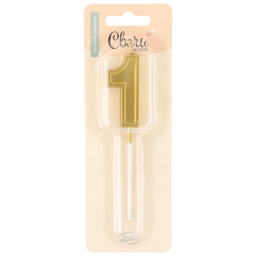 Свеча Цифра, 1 Чистая линия, на шпажке, Золото, 4,7*6,7 + 7 см, 1 шт. с держат., 803271