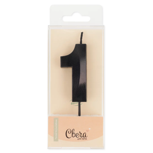 Свеча Цифра, 1 Грани, Черный, Металлик, 4,2*6 + 4,5 см, 1 шт. с держат., 803171