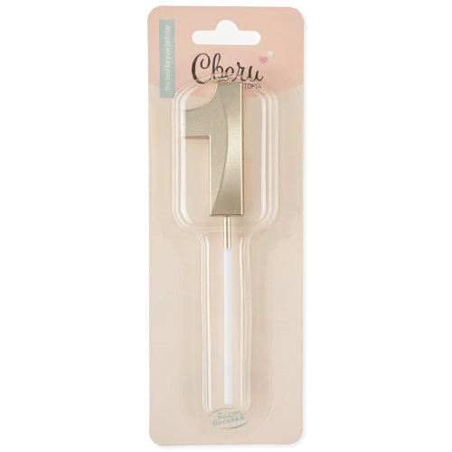 Свеча Цифра, 1 Грани, на шпажке, Белое золото, Металлик, 3,5*5 + 7 см, 1 шт. с держат., 802981