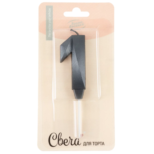 Свеча Цифра, 1 Грани, на шпажке, Мокрый асфальт, Металлик, 3,5*6,5 + 3,5 см, 1 шт. с держат., 3021