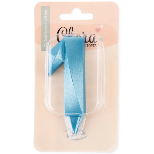 Свеча Цифра, 1 Грани, Синяя бирюза, 7 см, 1 шт., 1911