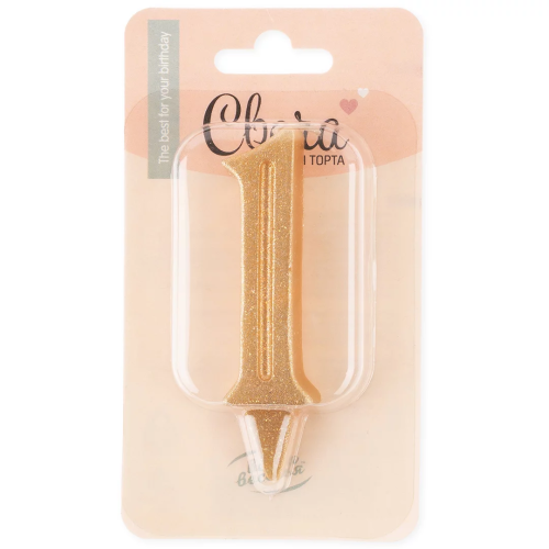 Свеча Цифра, 1 Грация, Золото, с блестками, 7 см, 1 шт., 2026