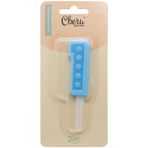 Свеча Цифра, 1 Конструктор, Голубой, 3,3*6,5 + 3 см, 1 шт. с держат., 802881