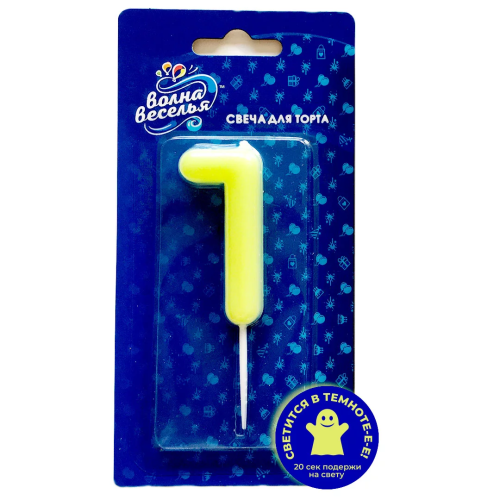 Свеча Цифра, 1 Люминесцентная, Флуор, 3,5*8,5 см, 1 шт. с держат., 802681