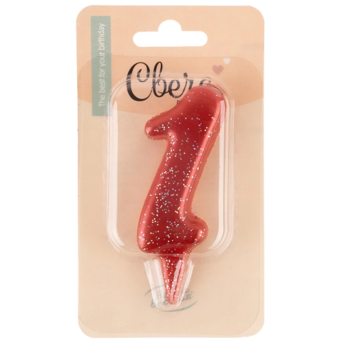Свеча Цифра, 1 Овал, Красный, с блестками, 4*8 см, 1 шт., 1487