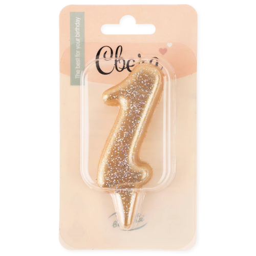 Свеча Цифра, 1 Овал, Золото, с блестками, 7 см, 1 шт., 1598