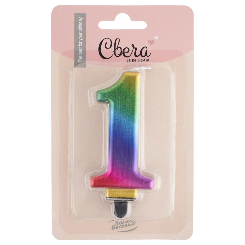 Свеча Цифра, 1, Радужный, Градиент, 8 см, 1 шт. с держат., 622071