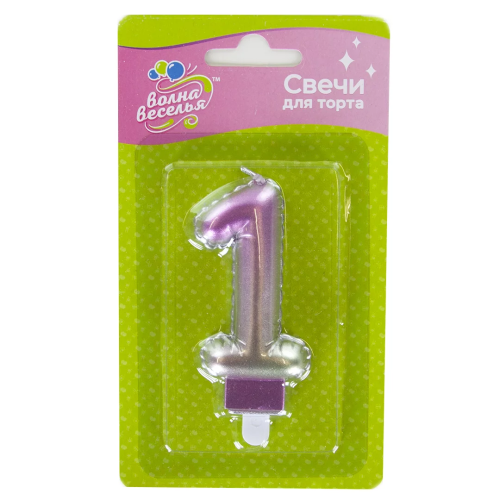 Свеча Цифра, 1, Розовый, Градиент, 7,5 см, 1 шт. с держат., 622971