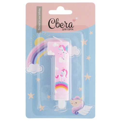 Свеча Цифра, 1 Волшебные единороги, Розовый, 9 см, 1 шт. с держат., 622981