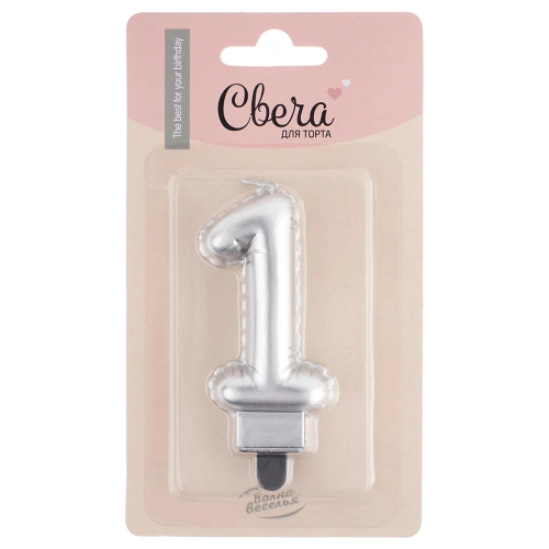 Свеча Цифра, 1 Воздушный шарик, Серебро, Металлик, 5*7 + 1 см, 1 шт. с держат., 623951