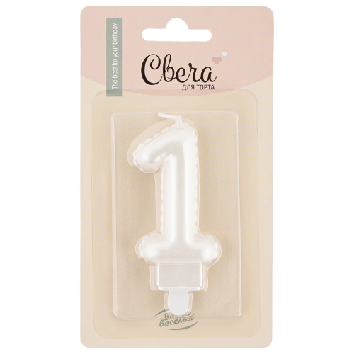Свеча Цифра, 1 Воздушный шарик, Жемчужный, Перламутр, 5*7 + 1 см, 1 шт., 639261