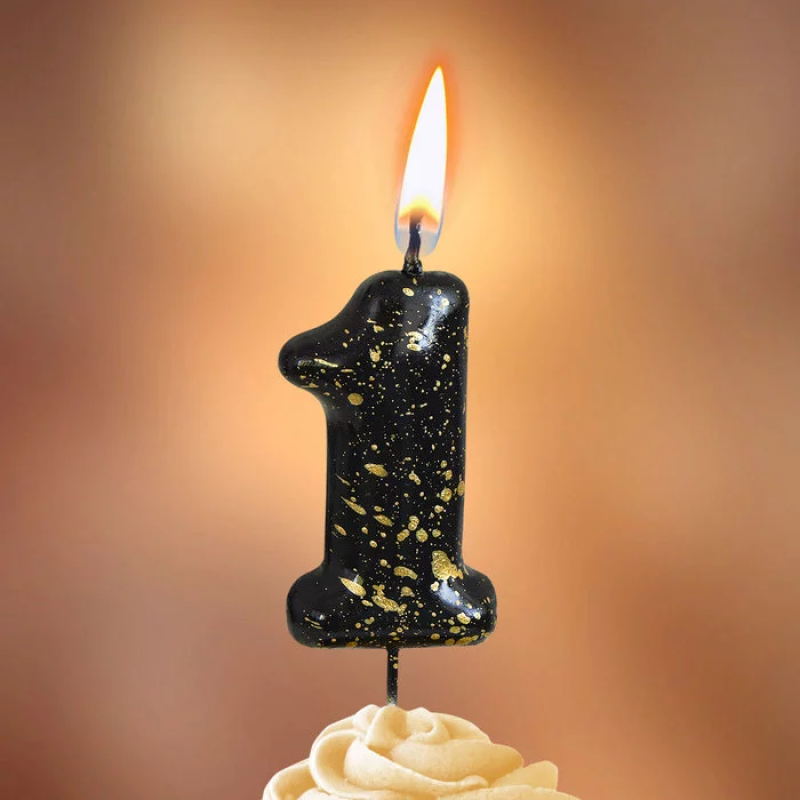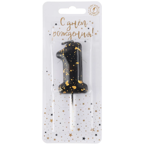 | Линейка | Свеча Цифра, Золотые брызги, Черный |