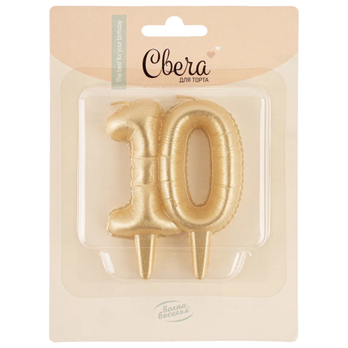 Свеча Цифра, 10 Юбилейные шарики, Золото, 8 см, 1 шт., 2119