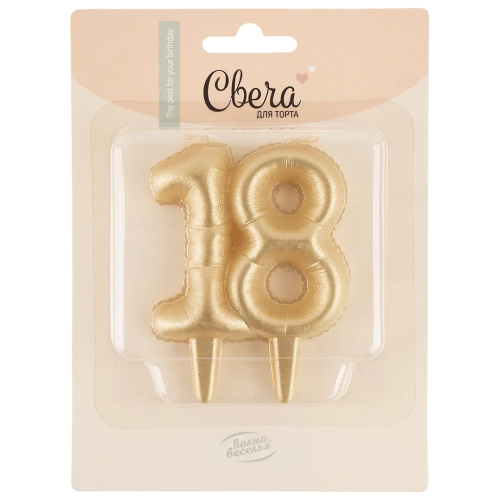 Свеча Цифра, 18 Юбилейные шарики, Золото, 8 см, 1 шт., 2120