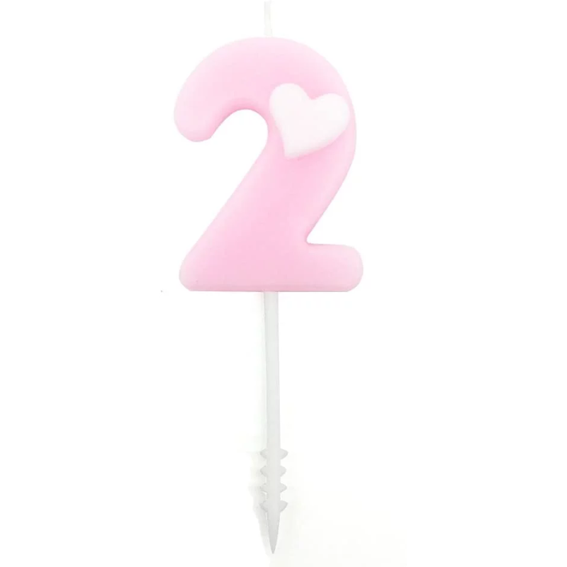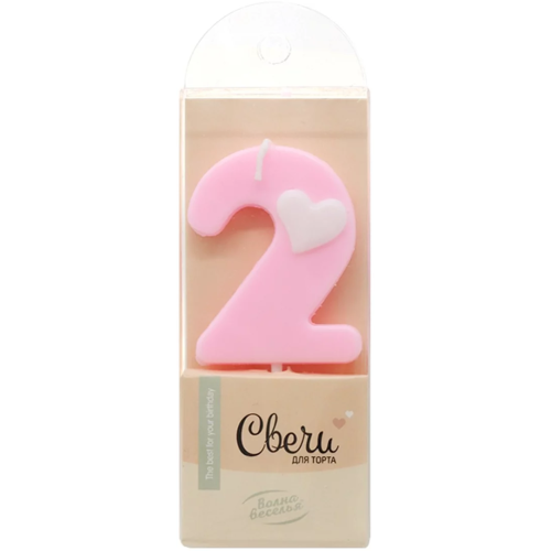 Свеча Цифра, 2 Белое сердечко, на шпажке, Розовый, 4,5 + 4 см, 1 шт. с держат., 802832