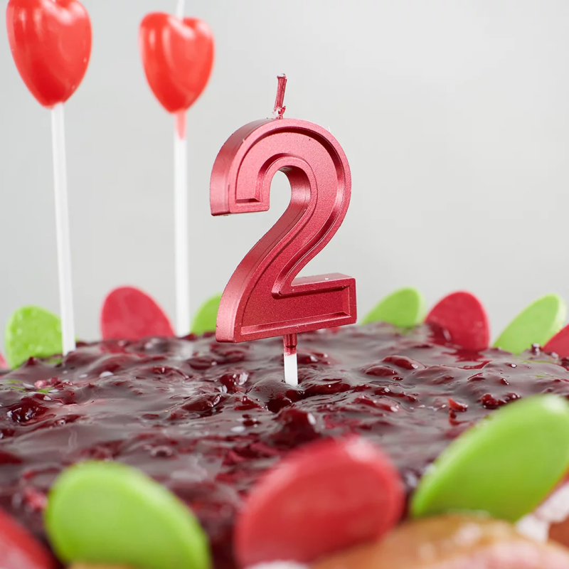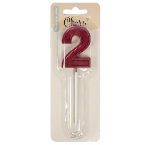 Свеча Цифра, 2 Чистая линия, на шпажке, Красный, 4,7*6,7 + 7 см, 1 шт. с держат., 802802