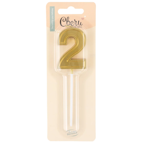 Свеча Цифра, 2 Чистая линия, на шпажке, Золото, 4,7*6,7 + 7 см, 1 шт. с держат., 803272