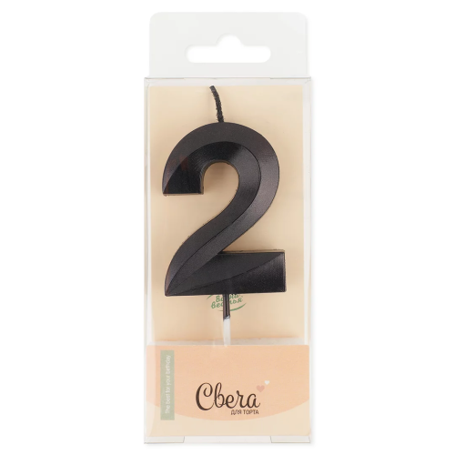Свеча Цифра, 2 Грани, Черный, Металлик, 4,2*6 + 4,5 см, 1 шт. с держат., 803172