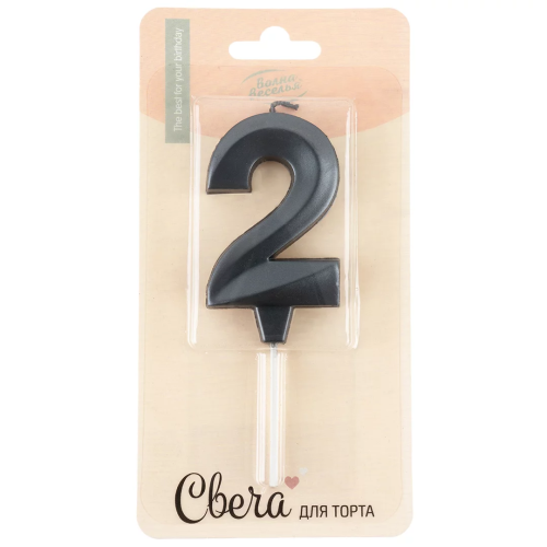 Свеча Цифра, 2 Грани, на шпажке, Мокрый асфальт, Металлик, 3,5*6,5 + 3,5 см, 1 шт. с держат., 3022