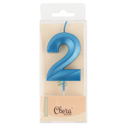 Свеча Цифра, 2 Грани, Синий, Металлик, 4,2*6 + 4,5 см, 1 шт. с держат., 803182