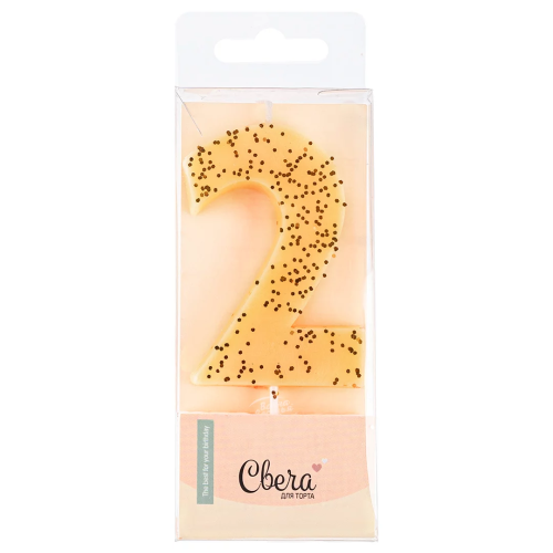 Свеча Цифра, 2, Кремовый, с блестками, 4,3*7,5 + 4,5 см, 1 шт. с держат., 803192