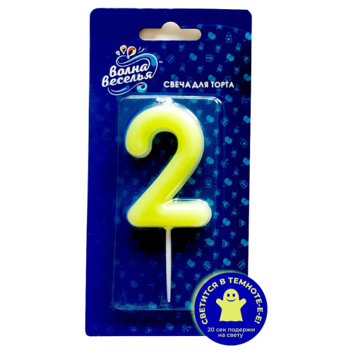 Свеча Цифра, 2 Люминесцентная, Флуор, 3,5*8,5 см, 1 шт. с держат., 802682