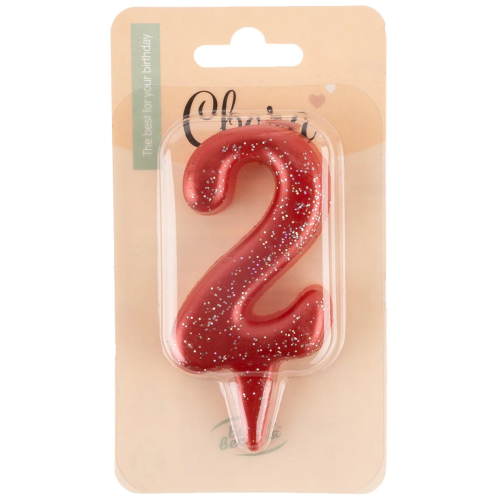 Свеча Цифра, 2 Овал, Красный, с блестками, 4*8 см, 1 шт., 1488