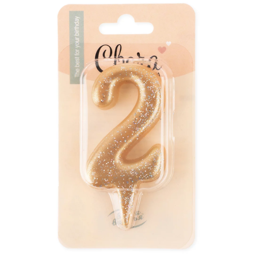 Свеча Цифра, 2 Овал, Золото, с блестками, 7 см, 1 шт., 1599