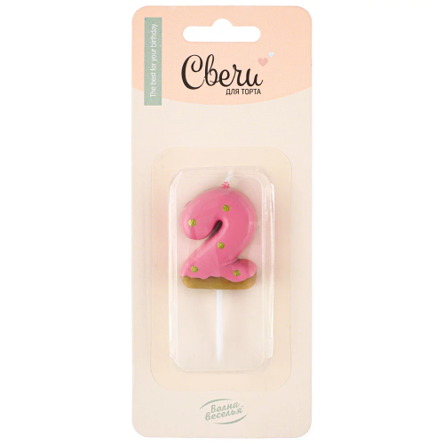 Свеча Цифра, 2 Пончик, Клубничная глазурь, 2,5*4 + 3 см, 1 шт. с держат., 802852