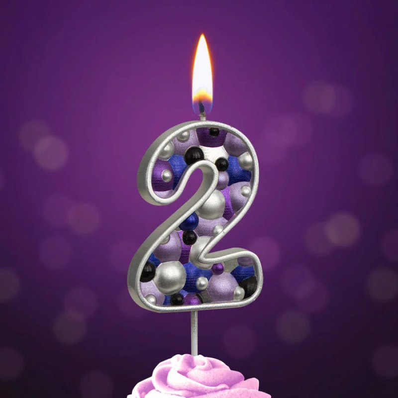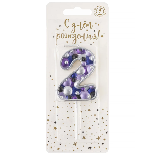 Свеча Цифра, 2 Пузырьки, на шпажке, Сиреневый, Металлик, 4*5,5 + 4 см, 1 шт. с держат., 5582