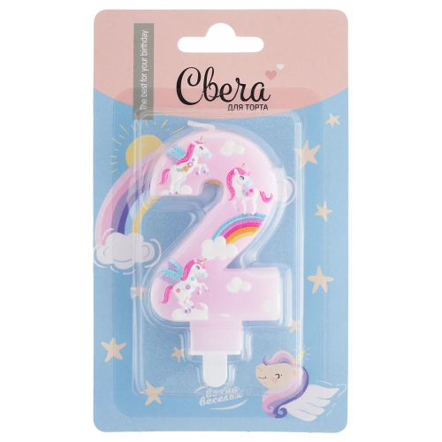 Свеча Цифра, 2 Волшебные единороги, Розовый, 9 см, 1 шт. с держат., 622982