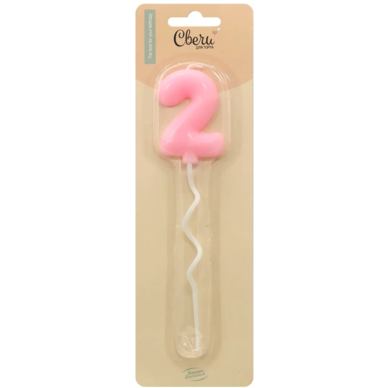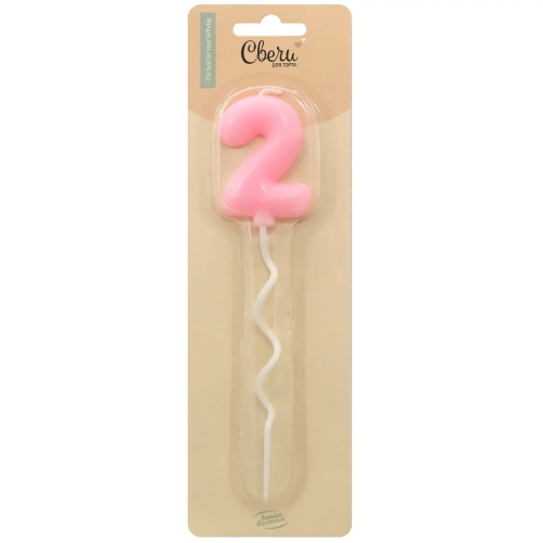 Свеча Цифра, 2 Воздушная серия, Розовый, 6 + 11 см, 1 шт. с держат., 802892