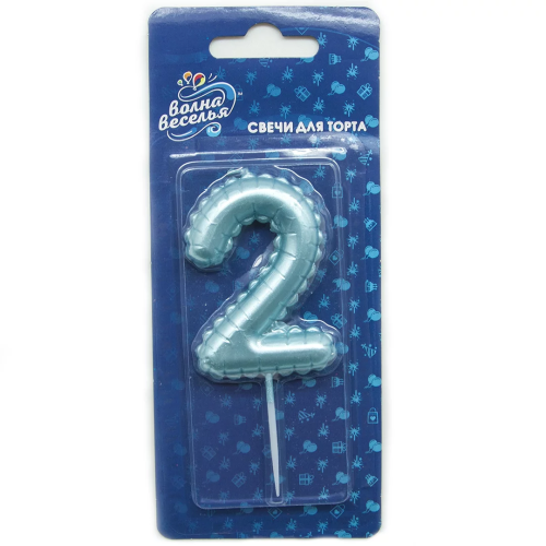 Свеча Цифра, 2 Воздушный шарик, Голубой, Перламутр, 5,8 см, 1 шт. с держат., 127402